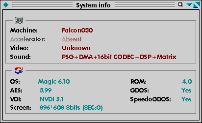 Configuration : ATARI FALCON 030 50MHz / CT60 69.7MHz (ABE60v4H/SDR60v4F), 896 x 608 x 256c.