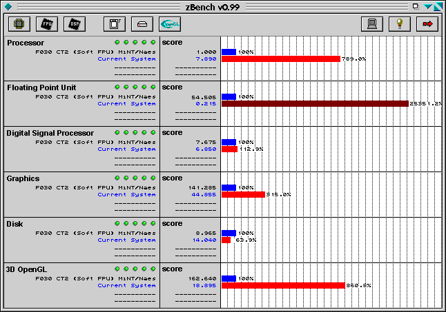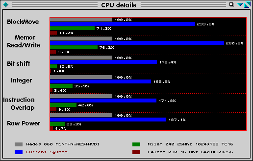 | Linear 32bit copy (FastRAM) | 42.833 MByte/sec (~1326%) |