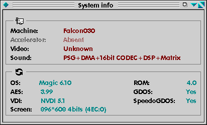 Configuration : ATARI FALCON 030 52MHz / CT60 105MHz (ABE60v5L/SDR60v5D), 896 x 608 x 16c.