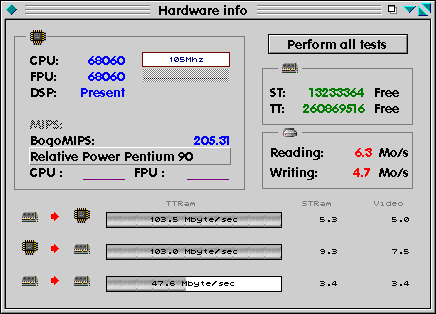 | Linear 32bit write (ST-Ram) | 9.709 MByte/sec (~150%) |