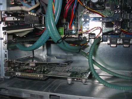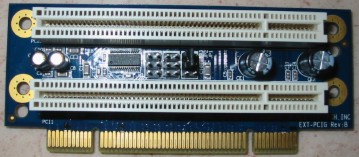 L'adapateur PCI/PCIe et la carte USB2 PCIe connectées sur le Firebee...