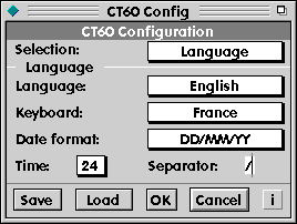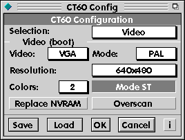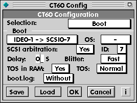 The CT60's configuration is set with a CPX, used normally with XCONTROL, ZCONTROL, or COPS.